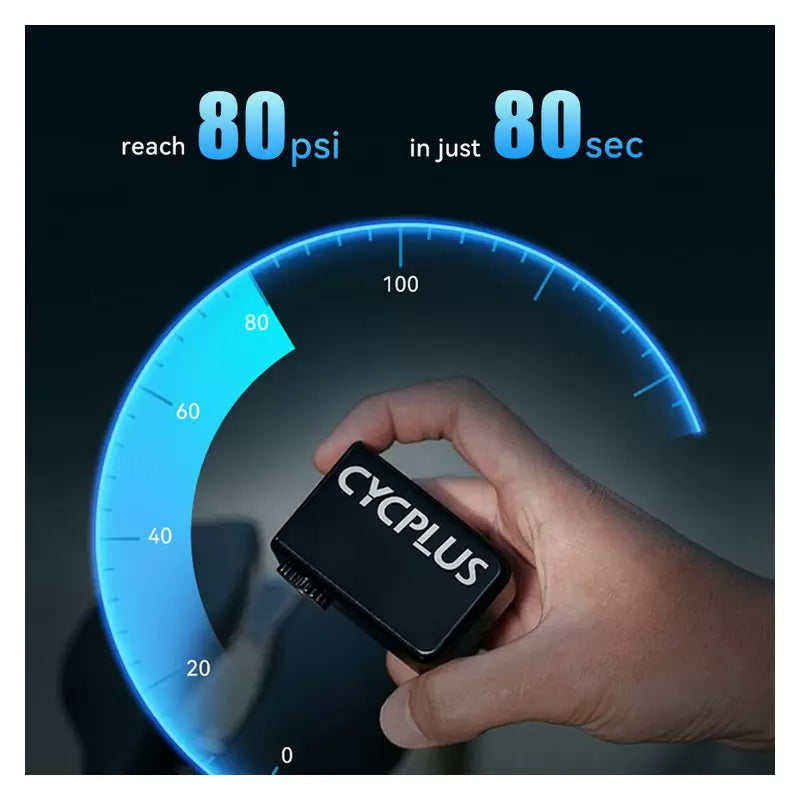 - Pressione dell'aria massima di 100 PSI e velocità del vento di 5 L/min consentono alla pompa ad aria Cycplus Tiny Pump di raggiungere un gonfiaggio rapido e di raggiungere una pressione di 80 PSI in soli 80 secondi. Questo aumenta l'efficienza del lavoro rispetto alle normali pompe ad aria e consente un rapido e comodo riempimento degli pneumatici della bicicletta in qualsiasi momento