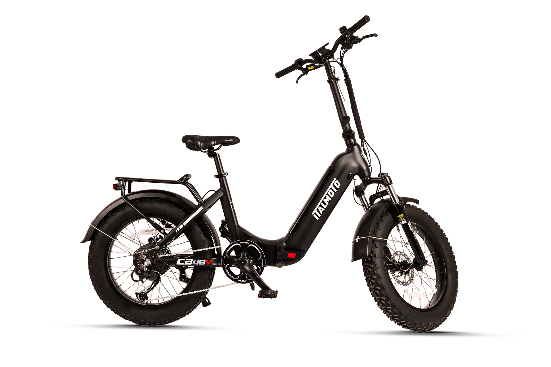 Italmoto Clodia CB 48V: e-bike pieghevole da città e tempo libero con motore da 250W, batteria 48V 12Ah, freni a disco idraulici Tektro e ruote fat da 20x4.0". Ideale per spostamenti urbani e avventure su ogni terreno.