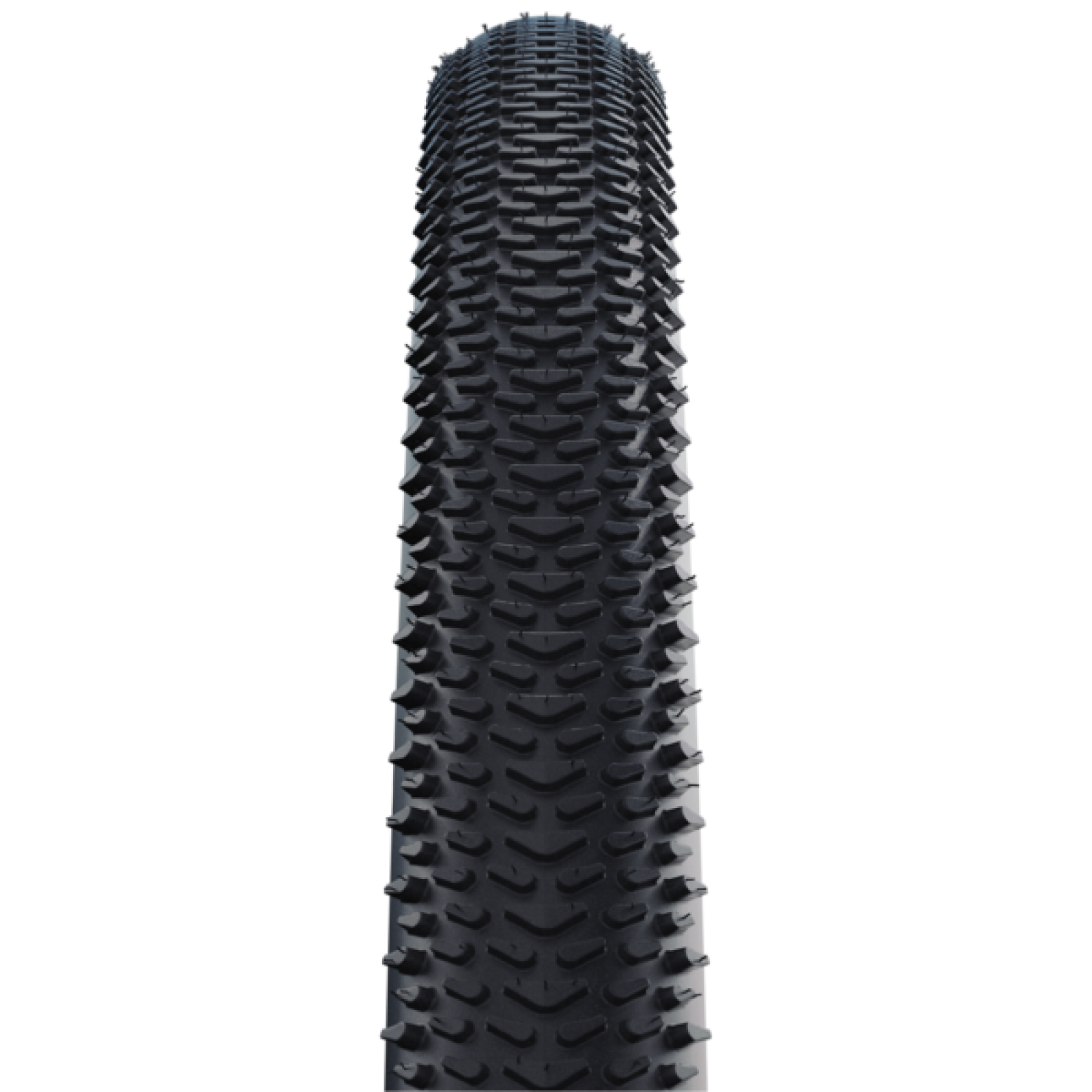 SCHWALBE G-ONE R Il miglior pneumatico Gravel da gara. Utilizzo: sterrato leggero, strade con ghiaia e asfalto, combina elasticità, velocità e controllo al massimo livello. Costruzione elastica: bassa resistenza al rotolamento grazie alla carcassa RACE PRO ed elevata protezione contro le forature. Grip elevato grazie al battistrada Boomerang e ai tasselli laterali angolati. Prodotto con caucciù proveniente dal commercio equo-solidale.