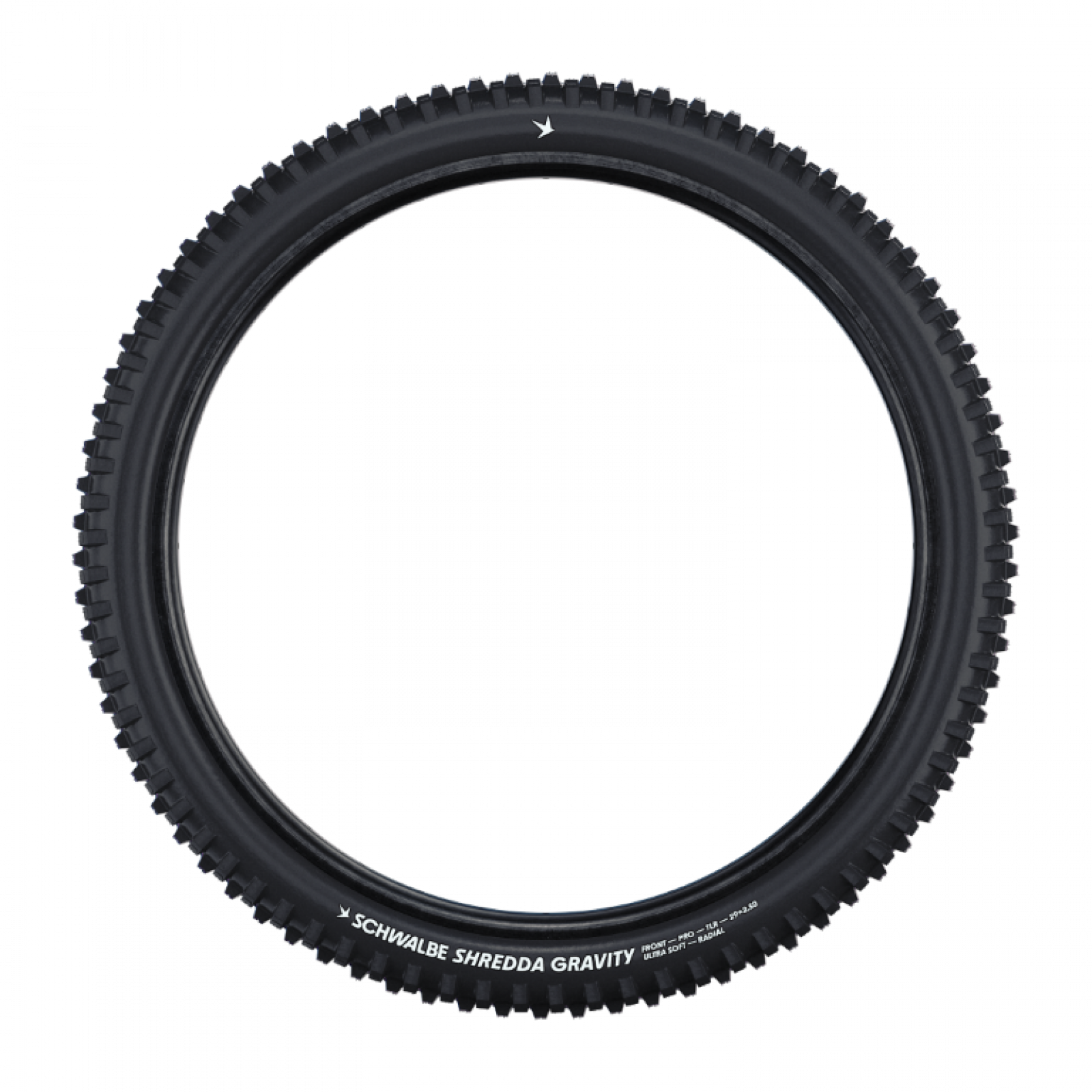 SHREDDA versione GRAVITY FRONT PRO mescola ULTRASOFT RADIALE TLE. La costruzione radiale della carcassa permette di avere un'area di contatto più ampia e di filtrare meglio le asperità del terreno: ciò si tramuta in maggiore grip, comfort e sicurezza. Aderisce letteralmente al terreno, in quanto lo pneumatico si deforma in modo più selettivo. Battistrada ottimizzato per la carcassa radiale: grazie al disegno del battistrada si genera una grande trazione in frenata e in propulsione, soprattutto sulle superfici allentate.