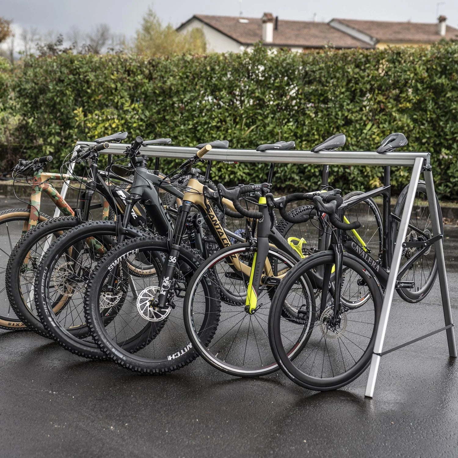 Il portabici è realizzato interamente in alluminio e prodotto in Italia.